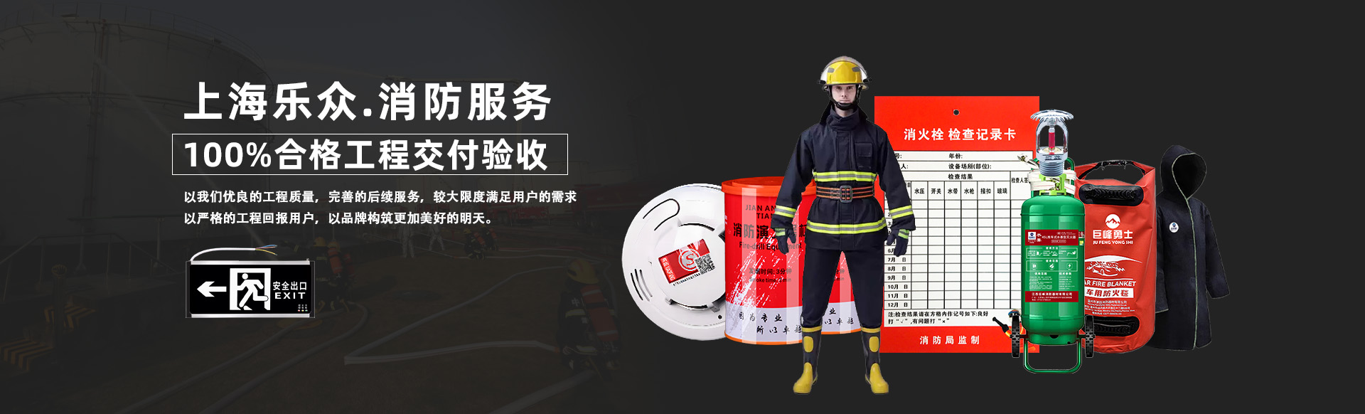 实力一个优秀的团队An excellent team上海乐众消防器材有限公司拥有一批高素质的高、中级科技人员。技术力量雄厚,灭火器生产设备先进,换药、检测设备完美,所有产品质量达到国家标准。效率诚信为本,守信为荣Give you safe transportation公司始终遵循着“诚信为本、创新求实、科学管理 ”的原则,牢记“100%合格工程交付验收”的质量目标,在我们设计施工的全部过程中,严格遵循“节约能源、减少环境污染”的方针,持续不断的改进工作绩效。